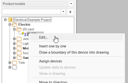 The I/O cards included in the standard database are product models that you can add to your projects in product model management. For these cards, you can also define other product model properties, such as symbols and additional information.