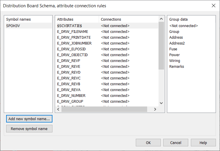 • Load selected symbol from disc and replace them in drawing – Retrieves all symbol definitions to drawing, removes old symbol definitions and changes new symbol definitions to drawing. Possible new attributes will appear. Attribute locations will according to symbol definition.