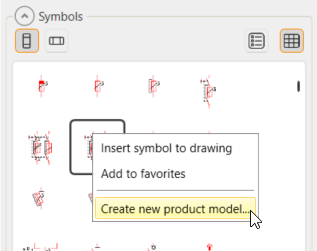 In the Symbols section, you can create product models based on the symbols by right-clicking the selected symbol and selecting Create new product model: