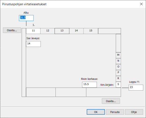 Tällä toiminnolla voit määrittää omaan piirustuspohjaasi virtatieasetukset. Mikäli kuvasta löytyy pohja, jolla on virtatieasetukset, niitä käytetään kuvan kaikilla lehdillä.