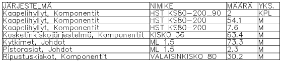 Luetteloi vain jos järjestelmätieto löytyy – Tämä ehto on käyttökelpoisin silloin kun kuva on tehty Electrical -sovelluksella. Tällöin vain sähkösymboleilla on järjestelmätieto ja laskelmaan ei tule turhia symboleita.