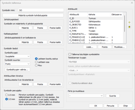 • Symbolin nimi – Anna tallennettavalle symbolille nimi. Toiminto tarjoaa symbolin nimen alkuun SO-liitettä, mutta voit määrittää haluamasi nimen.
