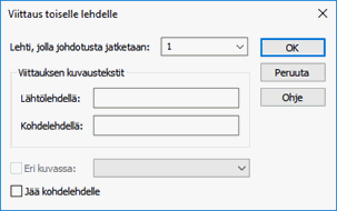 Valitse lehti, jolla viittausta jatketaan, ja osoita kohdelehdeltä viittauksen päätepiste.