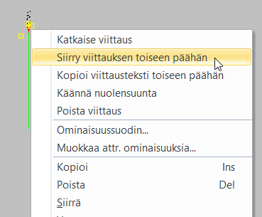 Voit siirtyä viittauksen toiseen päähän johdotusviittausta kaksoisnapsauttamalla. Vaihtoehtoisesti voit napsauttaa johdotusviittausta hiiren kakkospainikkeella ja valita Siirry viittauksen toiseen päähän.