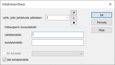 Jos haluat jäädä johdotuksen jälkeen viittauksen loppupään lehdelle, valitse Jää kohdelehdelle. Muussa tapauksessa palataan viittauksen alkupään lehdelle.