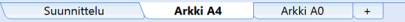 • Voit muuttaa layoutien välilehtien järjestystä raahaamalla välilehteä hiiren vasen painike pohjassa. Huomioi, että Suunnittelu-välilehden ja +-välilehden paikkoja ei voi vaihtaa.