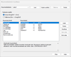 Muokkaa muunnostiedostoa