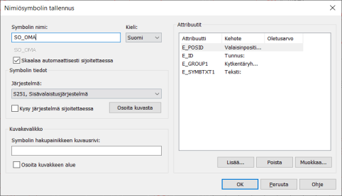 Jos haluat muokata symbolia, napsauta Muokkaa symbolia -painiketta. Nimiösymbolin tallennus -dialogi avautuu, ja voit muokata symbolin tietoja: