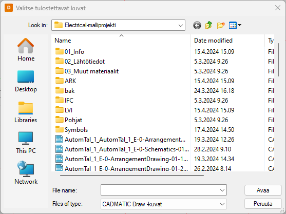 Napsauta OK-painiketta. Electrical-kuvien jonotulostus -dialogi avautuu.