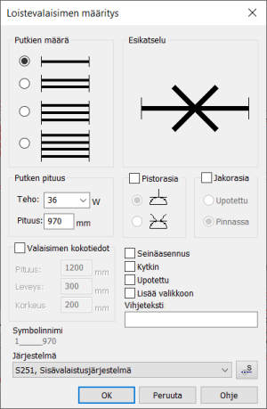 Valaisimet-valikko > Loistevalaisimen määritys