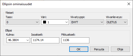 Voit muokata ellipsin kulmaa ja akselien pituutta.