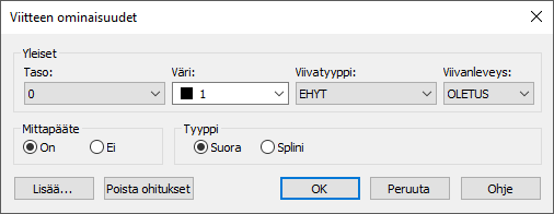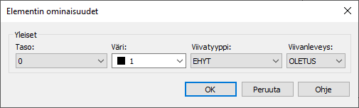 Voit muokata kaikista elementeistä yleisiä ominaisuuksia eli tasoa, väriä, viivatyyppiä ja viivanleveyttä.