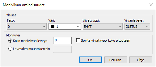 Voit myös sovittaa moniviivan viivatyypin koko moniviivan pituuteen. Katso lisätietoja kohdasta Moniviivan sovitettu viivatyyppi.