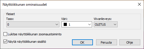 Voit muokata näyttöikkunan zoomauksen lukitusta ja näyttää tai piilottaa näyttöikkunan sisällön.