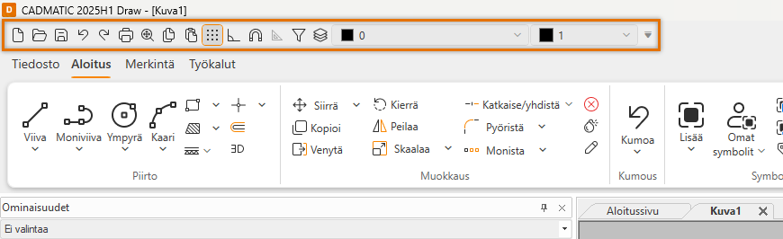 Rasteri päälle/pois – Kun rasteri on päällä, painike korostetaan oranssilla.