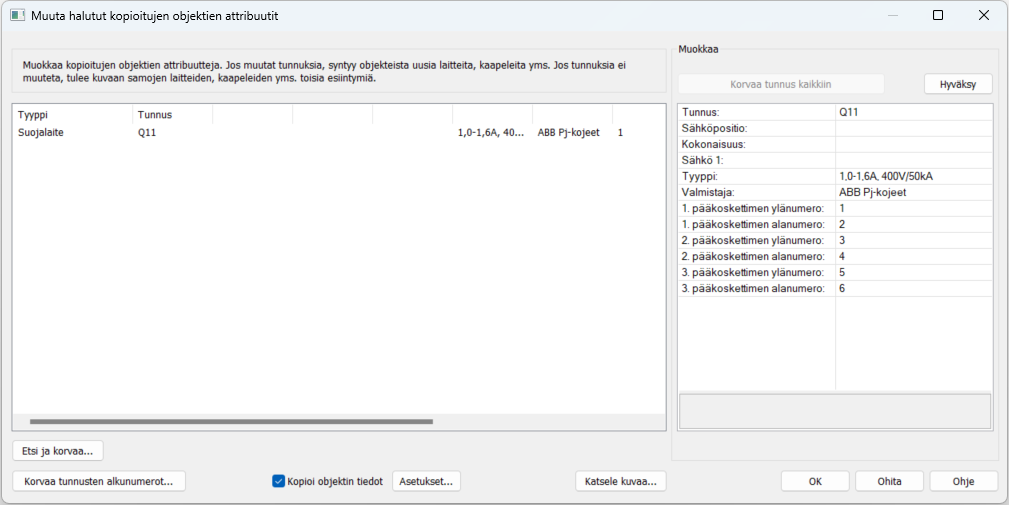 Kun olet tehnyt haluamasi muutokset, napsauta OK-painiketta, jolloin ohjelma toteuttaa kaikki attribuuttimuokkaukset. Jos et tee mitään muokkauksia ja napsautat OK-painiketta, objekteista tehdään kopiot eli olemassa olevista laitteista syntyy uudet esiintymät.