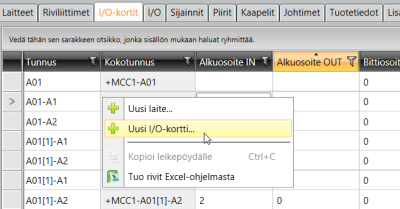 Paina hiiren kakkospainiketta, ja valitse Uusi I/O-kortti.