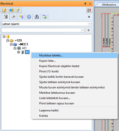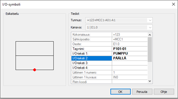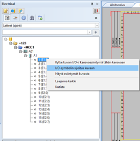 Paina I/O-kortin sijoitettavan kanavan päällä hiiren kakkospainiketta, ja valitse I/O-symbolin sijoitus kuvaan.