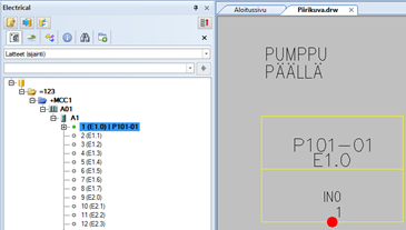 Sijoita piirustuspohja, ja määrittele sille kokonaisuus =123 ja sähköpositio +MCC1.