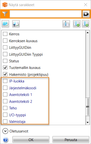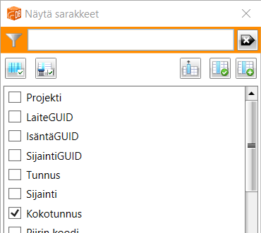 -painikkeella voit näyttää vain valitut sarakkeet. -