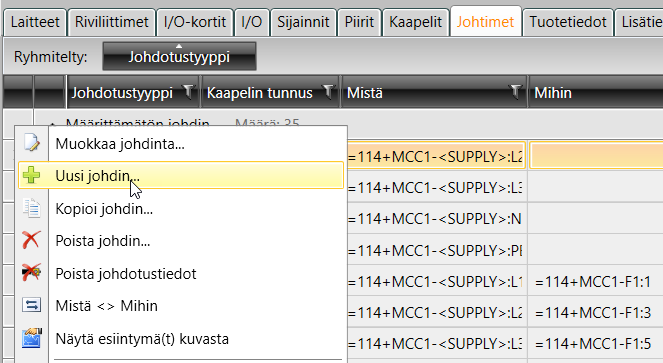 Voit luoda projektiin yksittäisiä johtimia, jotka eivät kuulu mihinkään kaapeliin.