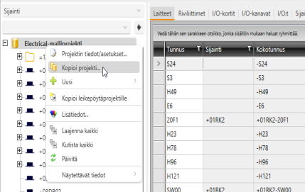 Napsauta projektipuun ylintä tasoa hiiren kakkospainikkeella, ja valitse Kopioi projekti.