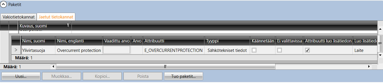 Kopioi – Luo kopio valitsemastasi paketista uudella nimellä. Paketin sisältämät tietueet kopioituvat uudelle paketille.