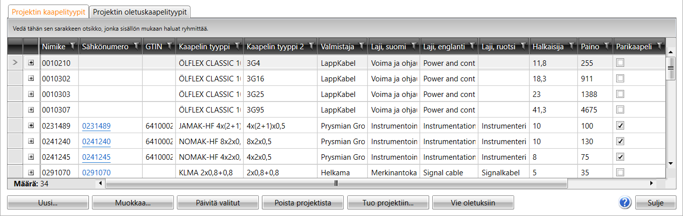 Uusi – Luo uusi tietue projektiin. Voit luoda uuden tietueen myös valitsemalla olemassa olevan tietueen ja napsauttamalla Muokkaa-painiketta ja sitten avautuvan dialogin