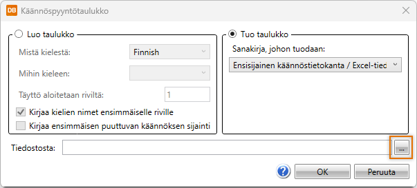 -painiketta valitaksesi käännöstiedoston, johon tekstit lisätään.