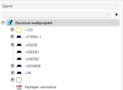 Projektipuuhun tulee näkyviin Käyttäjän valintalista, ja valitsemasi tieto on lisätty siihen.