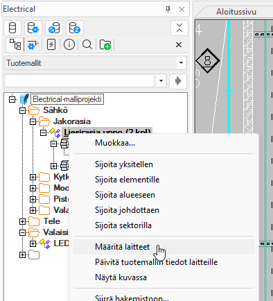 Napsauta Tuotemallit-puussa hiiren kakkospainikkeella sitä tuotemallia, jonka haluat määrittää laitteille, ja valitse Määritä laitteet.