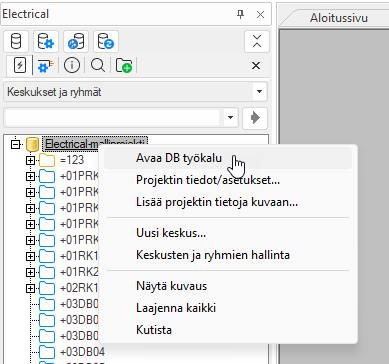 -kuvaketta hiiren kakkospainikkeella ja valitsemalla Avaa DB työkalu.