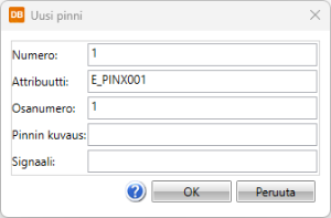 - Attribuutti – Jokaista pinniä vastaa sen oma attribuutti, joka sisältää pinninumeron, yleensä E_PINA???, E_PINB??? tai E_PINX??? kytkentäpuolen mukaan.