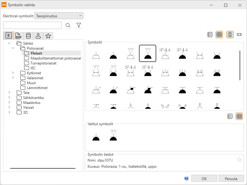Electrical-symbolit – Tällä välilehdellä näet kaikki käytettävissä olevat Electrical-symbolit.