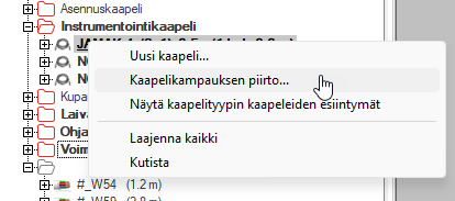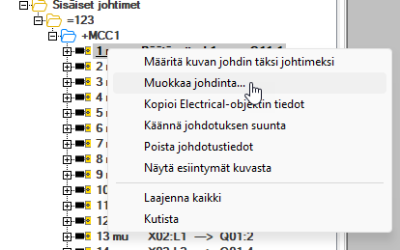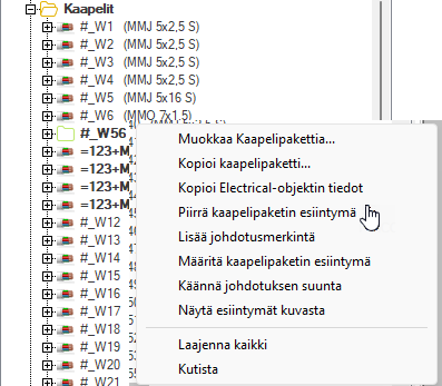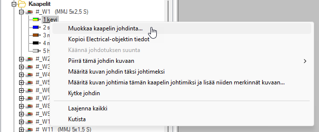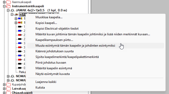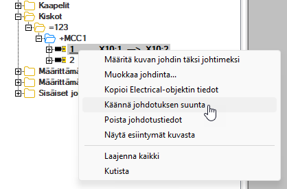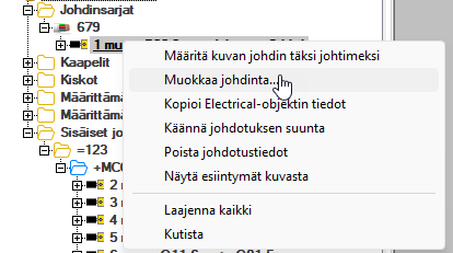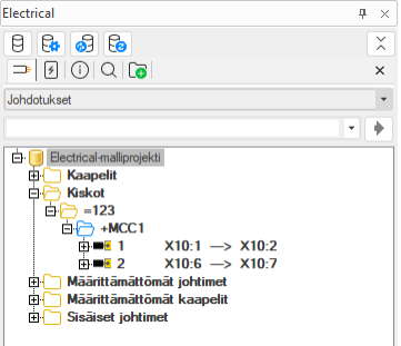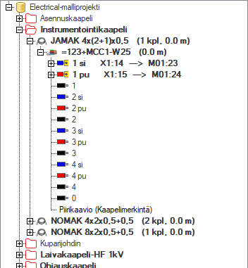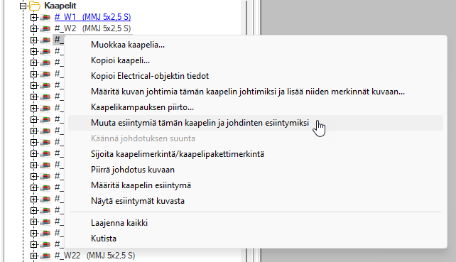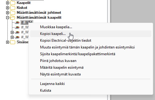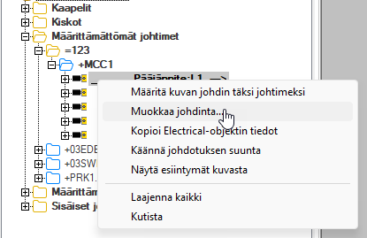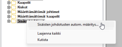 • Kytkemättömät johdinesiintymät – Kaapelin johtimet, johdinsarjan johtimet ja sisäiset johtimet tai kiskot, joiden esiintymän jompikumpi pää on kytkemättä ja joiden Mistä- tai Mihin-tieto on tyhjä