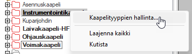 • Voit käynnistää monia erilaisia toimintoja projektipuun eri osista valitsemalla osan puusta ja napsauttamalla hiiren kakkospainiketta. Tällöin avautuu valikko, jossa on ko. osaan liittyviä toimintoja.