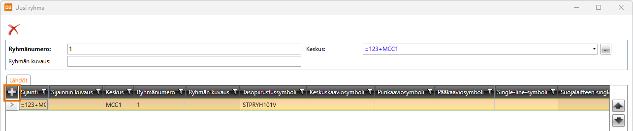 Lisää ryhmään tarvittaessa lähtöjä Lähdöt-osion
