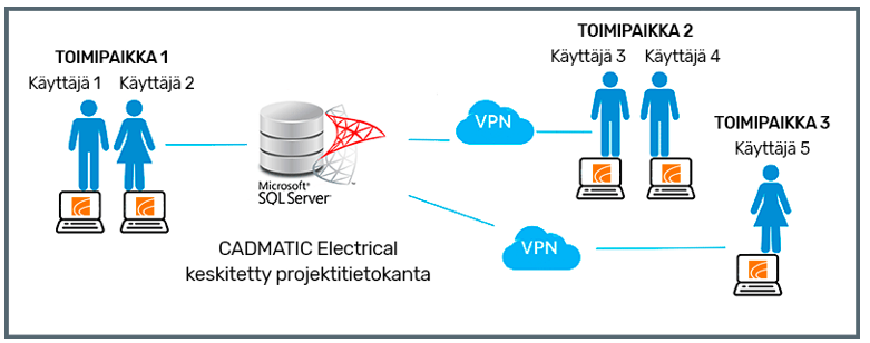 Voit tallentaa haluamiesi projektien tietoja SQL-palvelimella olevaan tietokantaan, joka soveltuu etäkäyttöön (VPN) ja monikäyttäjäprojekteihin.