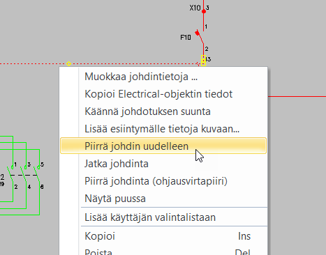 Napsauta johdinta hiiren kakkospainikkeella, ja valitse Piirrä johdin uudelleen.