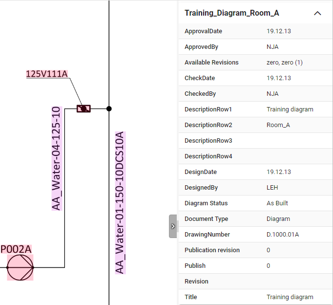 When you are viewing an opened document, the properties pane on the right displays all the metadata fields of the currently displayed document, as provided by the document data source. Documents obtained from the file system only display their creation and modification date.
