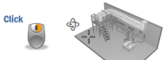 In normal navigation mode, the camera rotates around the user’s viewpoint, to simulate an actual person walking around a facility and looking in different directions to see the surrounding objects.