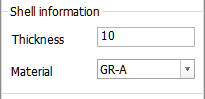 If you select the hull shape line, the Shell Information section is shown for entering the thickness and material type of the shell plating. This information is needed in cases where shell plates are involved when creating bevels.