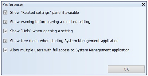 Show tree menu when opening System Management application – If enabled, the tree menu is automatically shown when the System Management application is started.