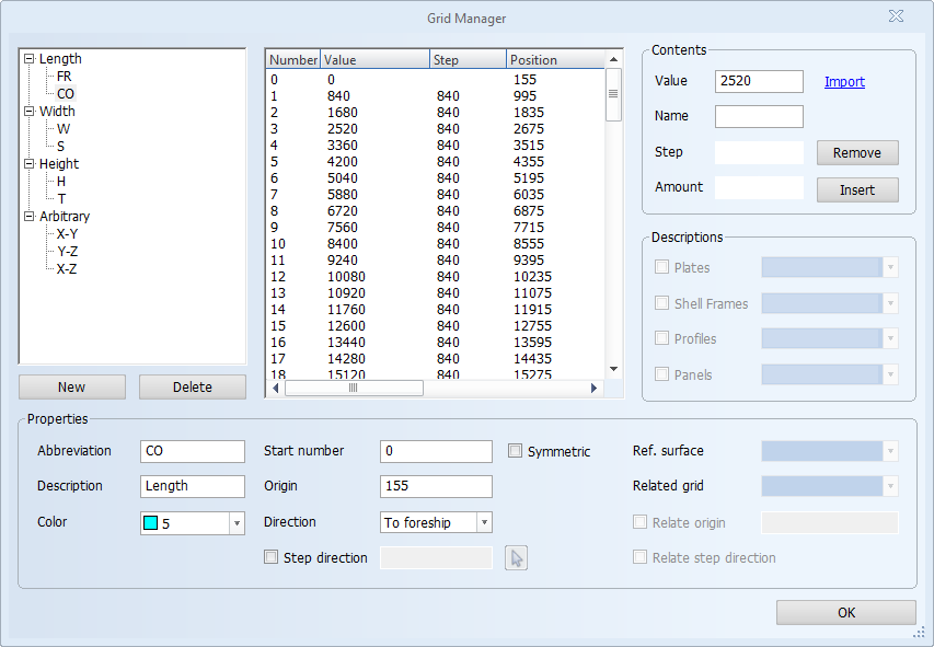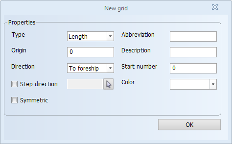 For length, width and height grids, the direction is defined as To foreship (default) or To aftship for length; To starboard (default) or To portside for width; To top (default) or To bottom for height.