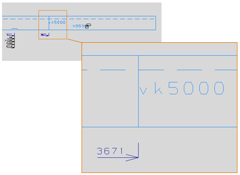The position and the line and text (VK 5000 in the example below), are controlled by the following information fields: