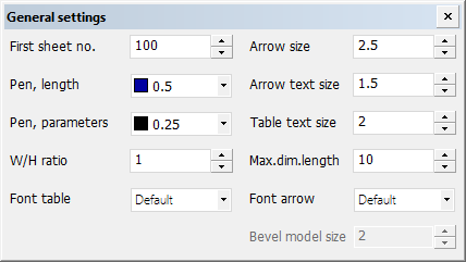 Bevel model size – Set the enlargement factor for bevel models and the variable bevel angle marker model on a profile sketch. The default value is 2. It is assumed that the model is created for scale 1:25.