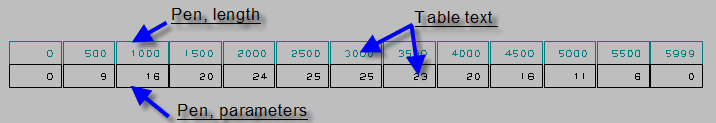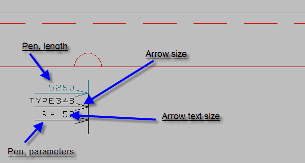 Pen, length – Define the pen number of the dimensions that indicate the position of the cutout or marking on the profile.
