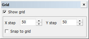 A horizontal and vertical grid can be used to make it easier to align fields exactly. You can set the (relative) step size. If Snap to grid is selected, new fields and existing fields that are moved will snap to the nearest grid point.