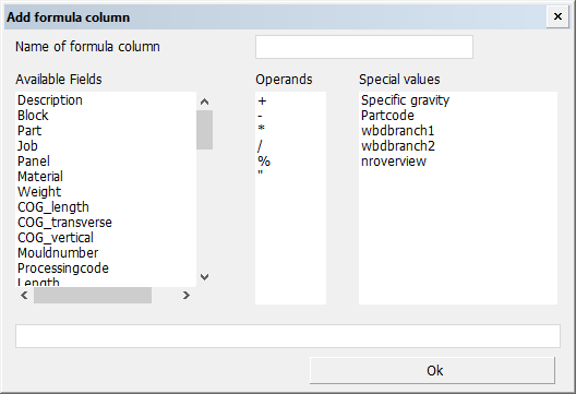 Formula columns can be used to display the outcomes of a formula. You specify the name of the column and the formula used for it.