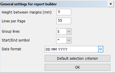 Default selection criterion – Set the default values for selection criteria. These criteria will be stored for each report layout.